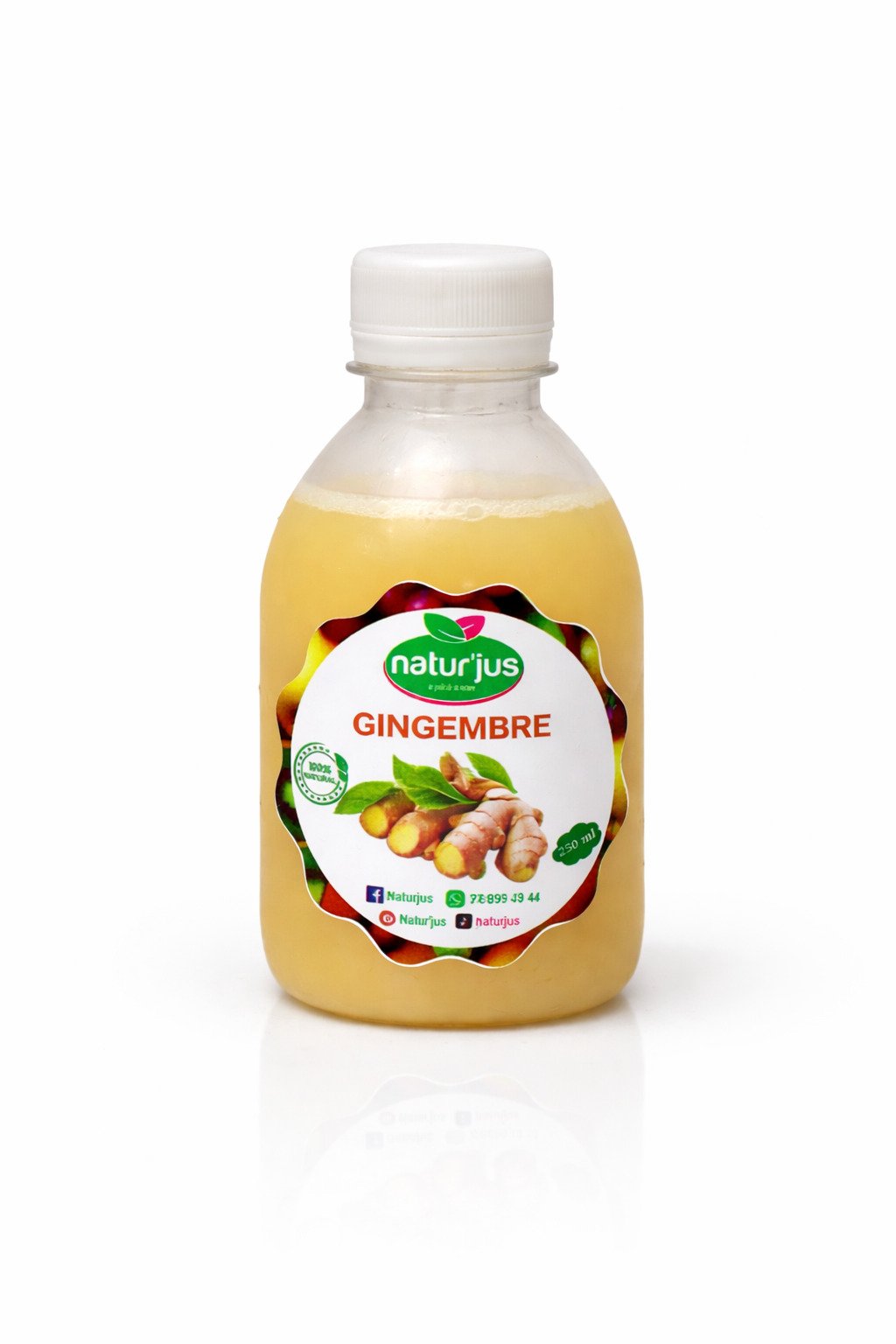 Jus de gingembre frais 100% naturel, tonique et énergisant. Fabriqué artisanalement à Dakar avec des ingrédients 100% naturels. Remuer avant consommation. Conserver au frais.